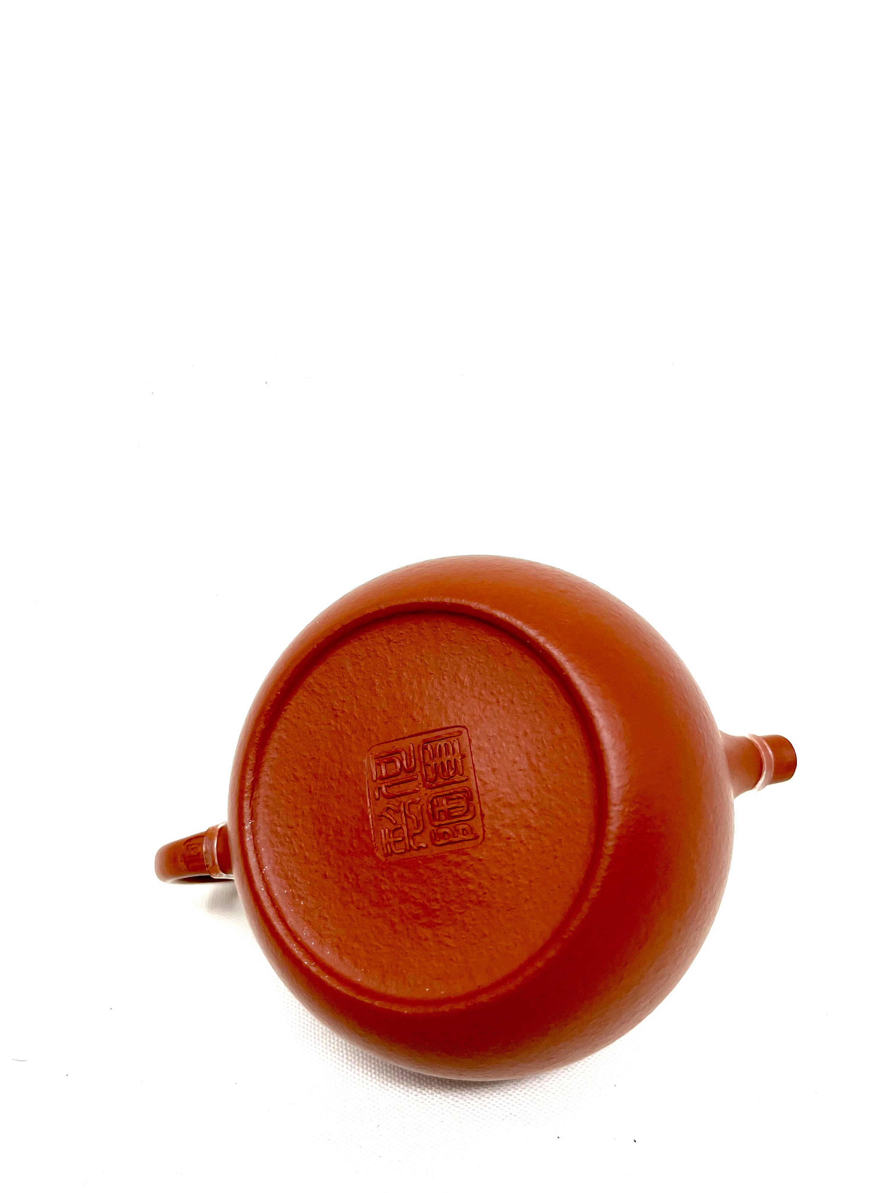 Spettacolare teiera Yixing in argilla rossa scelta personalmente durante uno dei nostri ultimi viaggi in Cina. Il modello ricorda una piccola anguria. Il corpo della teiera è perfettamente rotondo, liscio e bombato. Il manico è un anello capovolto e il beccuccio è corto e conico, bilanciando perfettamente le curve del corpo tondo che si presta anche a tè voluminosi.